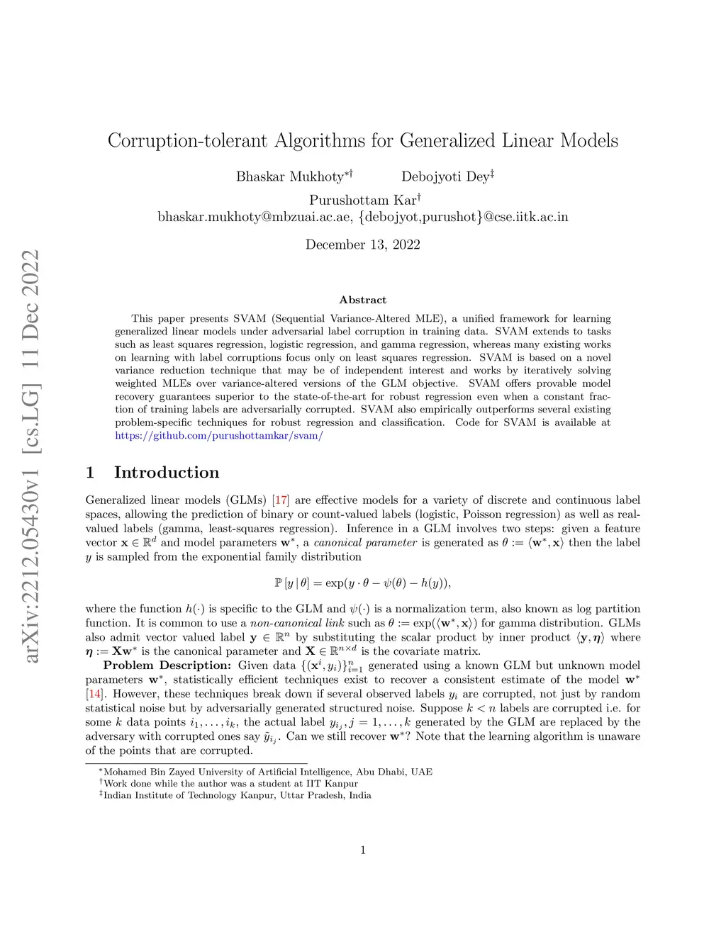 This paper presents SVAM (Sequential Variance-Altered MLE), a unified framework for learning generalized linear models under adversarial label corruption in training data. SVAM extends to tasks such as least squares regression, logistic regression, and gamma regression, whereas many existing works on learning with label corruptions focus only on least squares regression. SVAM is based on a novel variance reduction technique that may be of independent interest and works by iteratively solving weighted MLEs over variance-altered versions of the GLM objective. SVAM offers provable model recovery guarantees superior to the state-of-the-art for robust regression even when a constant fraction of training labels are adversarially corrupted. SVAM also empirically outperforms several existing problem-specific techniques for robust regression and classification. Code for SVAM is available at https://github.com/purushottamkar/svam/