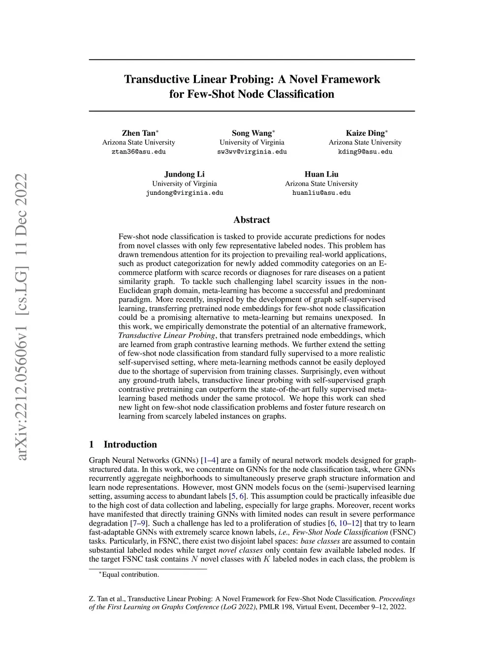 Transductive Linear Probing: A Novel Framework for Few-Shot Node
