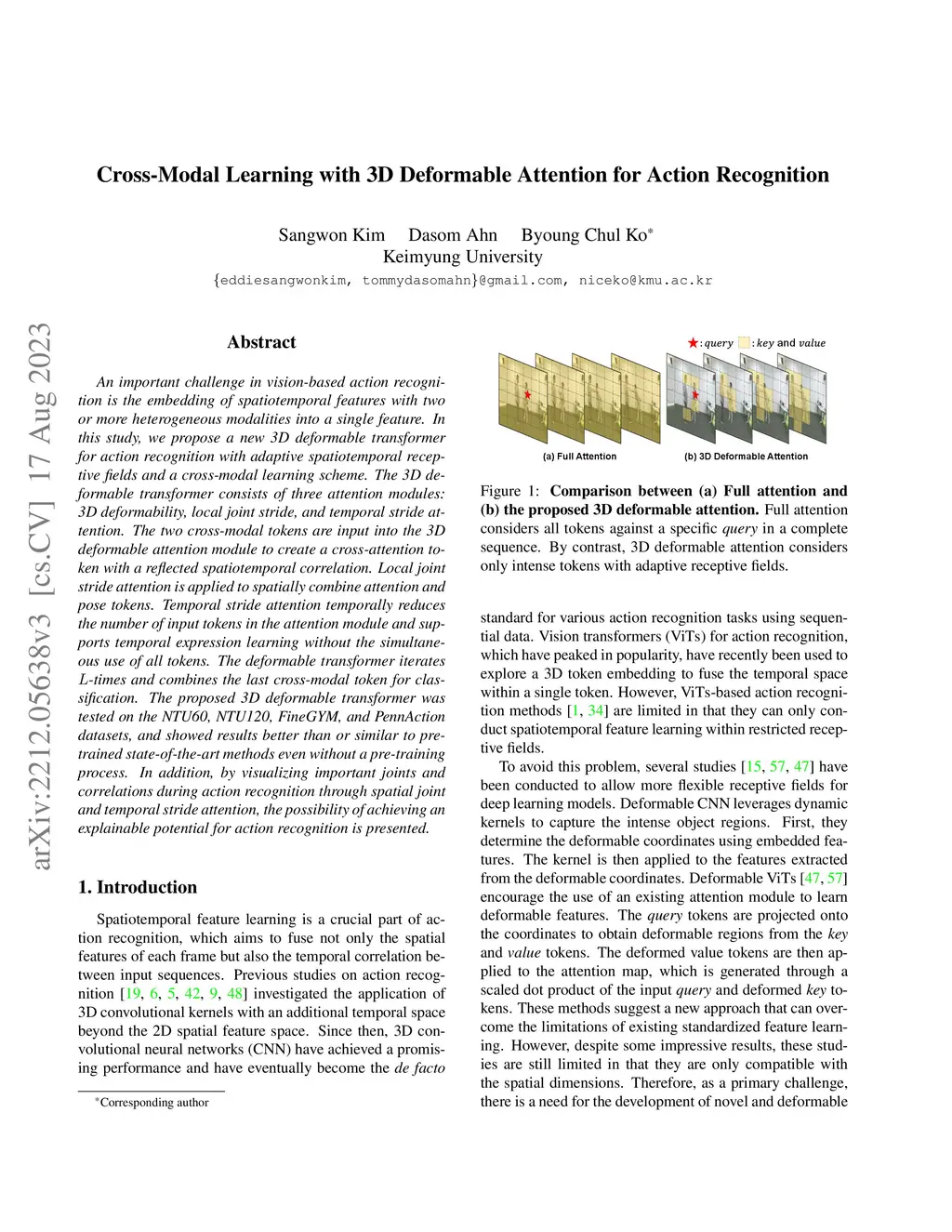 Cross-Modal Learning with 3D Deformable Attention for Action Recognition