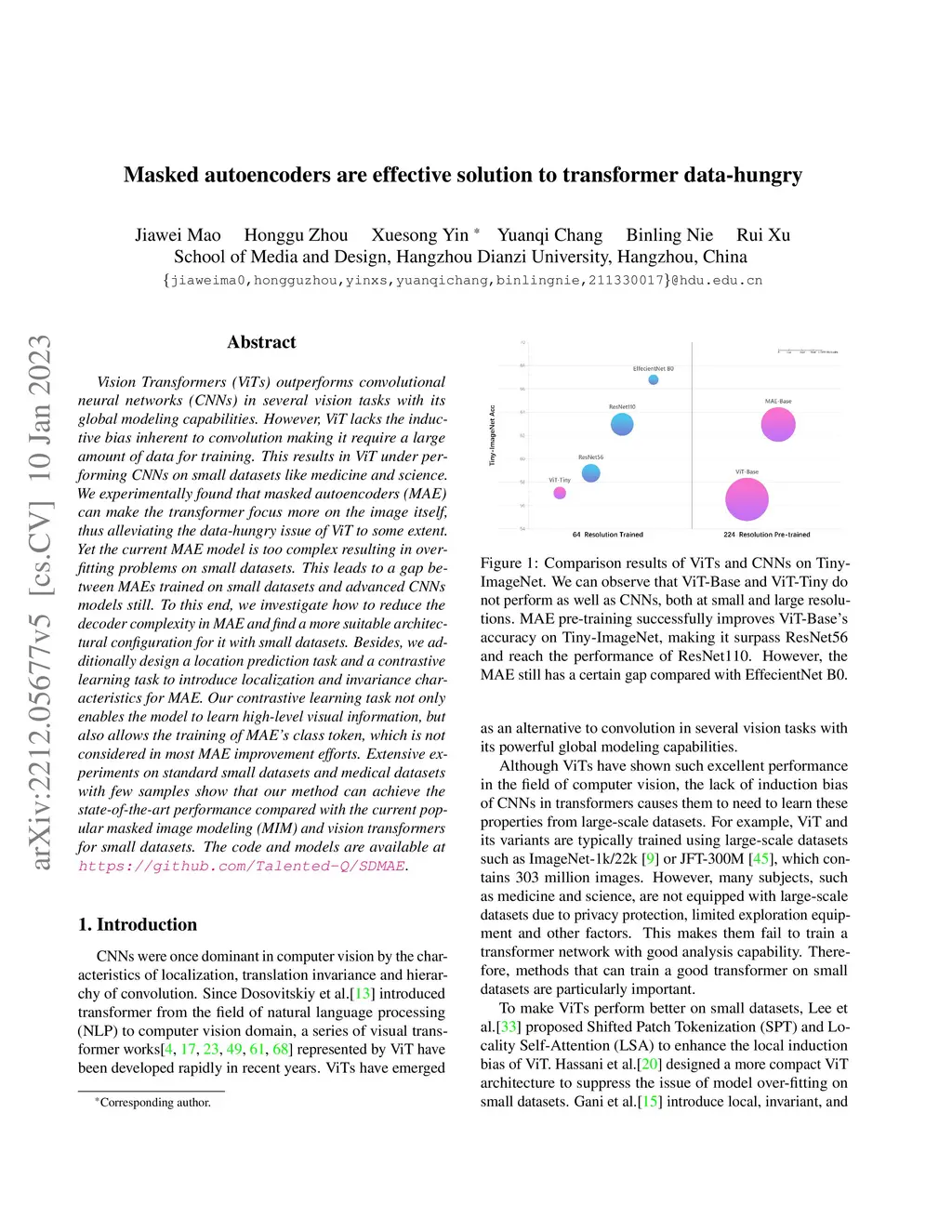 Masked autoencoders are effective solution to transformer data-hungry