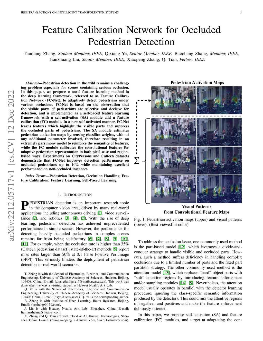 Pedestrian detection in the wild remains a challenging problem especially for scenes containing serious occlusion. In this paper, we propose a novel feature learning method in the deep learning framework, referred to as Feature Calibration Network (FC-Net), to adaptively detect pedestrians under various occlusions. FC-Net is based on the observation that the visible parts of pedestrians are selective and decisive for detection, and is implemented as a self-paced feature learning framework with a self-activation (SA) module and a feature calibration (FC) module. In a new self-activated manner, FC-Net learns features which highlight the visible parts and suppress the occluded parts of pedestrians. The SA module estimates pedestrian activation maps by reusing classifier weights, without any additional parameter involved, therefore resulting in an extremely parsimony model to reinforce the semantics of features, while the FC module calibrates the convolutional features for adaptive pedestrian representation in both pixel-wise and region-based ways. Experiments on CityPersons and Caltech datasets demonstrate that FC-Net improves detection performance on occluded pedestrians up to 10% while maintaining excellent performance on non-occluded instances.