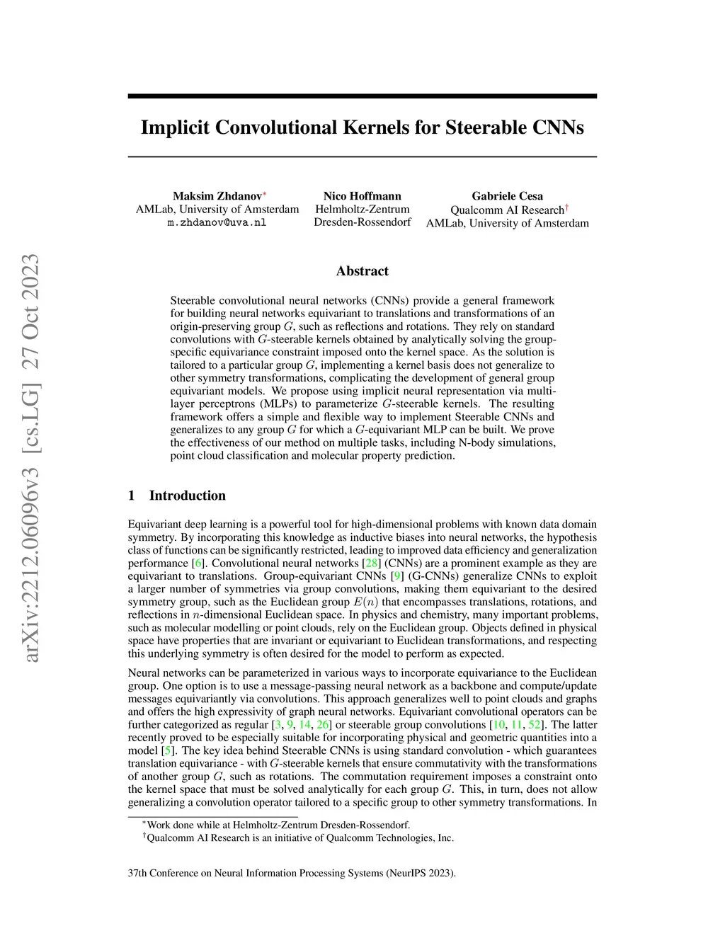 Implicit Convolutional Kernels for Steerable CNNs