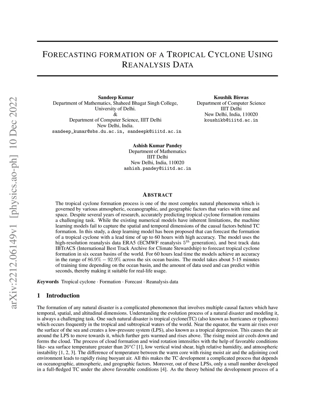 Forecasting formation of a Tropical Cyclone Using Reanalysis Data