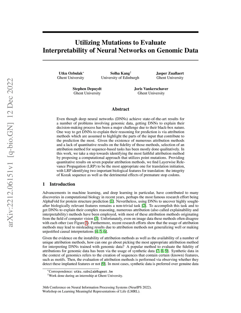 Even though deep neural networks (DNNs) achieve state-of-the-art results for a number of problems involving genomic data, getting DNNs to explain their decision-making process has been a major challenge due to their black-box nature. One way to get DNNs to explain their reasoning for prediction is via attribution methods which are assumed to highlight the parts of the input that contribute to the prediction the most. Given the existence of numerous attribution methods and a lack of quantitative results on the fidelity of those methods, selection of an attribution method for sequence-based tasks has been mostly done qualitatively. In this work, we take a step towards identifying the most faithful attribution method by proposing a computational approach that utilizes point mutations. Providing quantitative results on seven popular attribution methods, we find Layerwise Relevance Propagation (LRP) to be the most appropriate one for translation initiation, with LRP identifying two important biological features for translation: the integrity of Kozak sequence as well as the detrimental effects of premature stop codons.