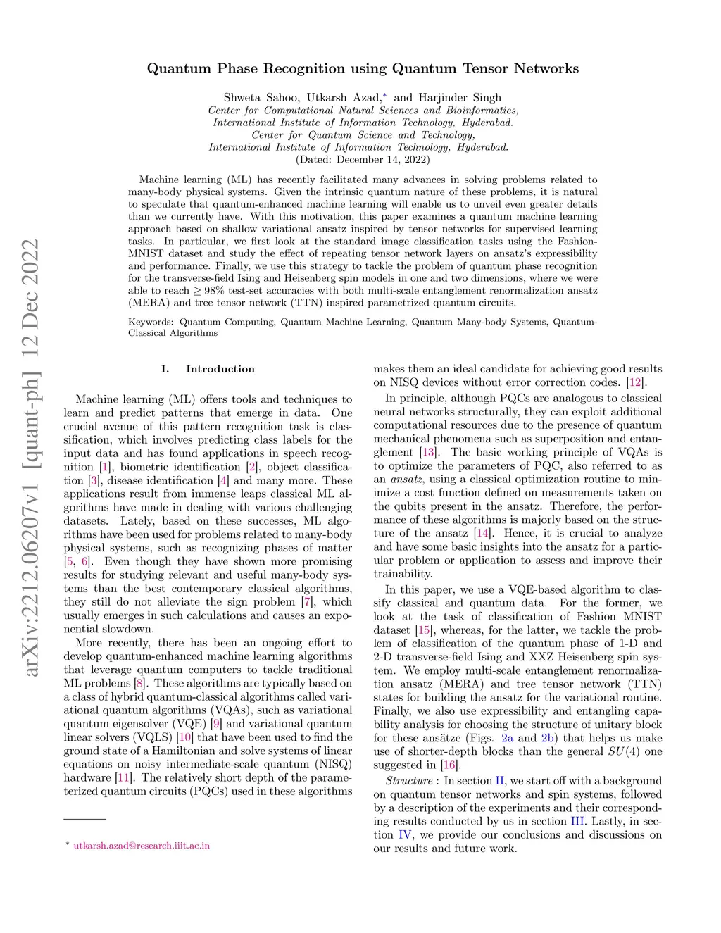 Quantum Phase Recognition using Quantum Tensor Networks