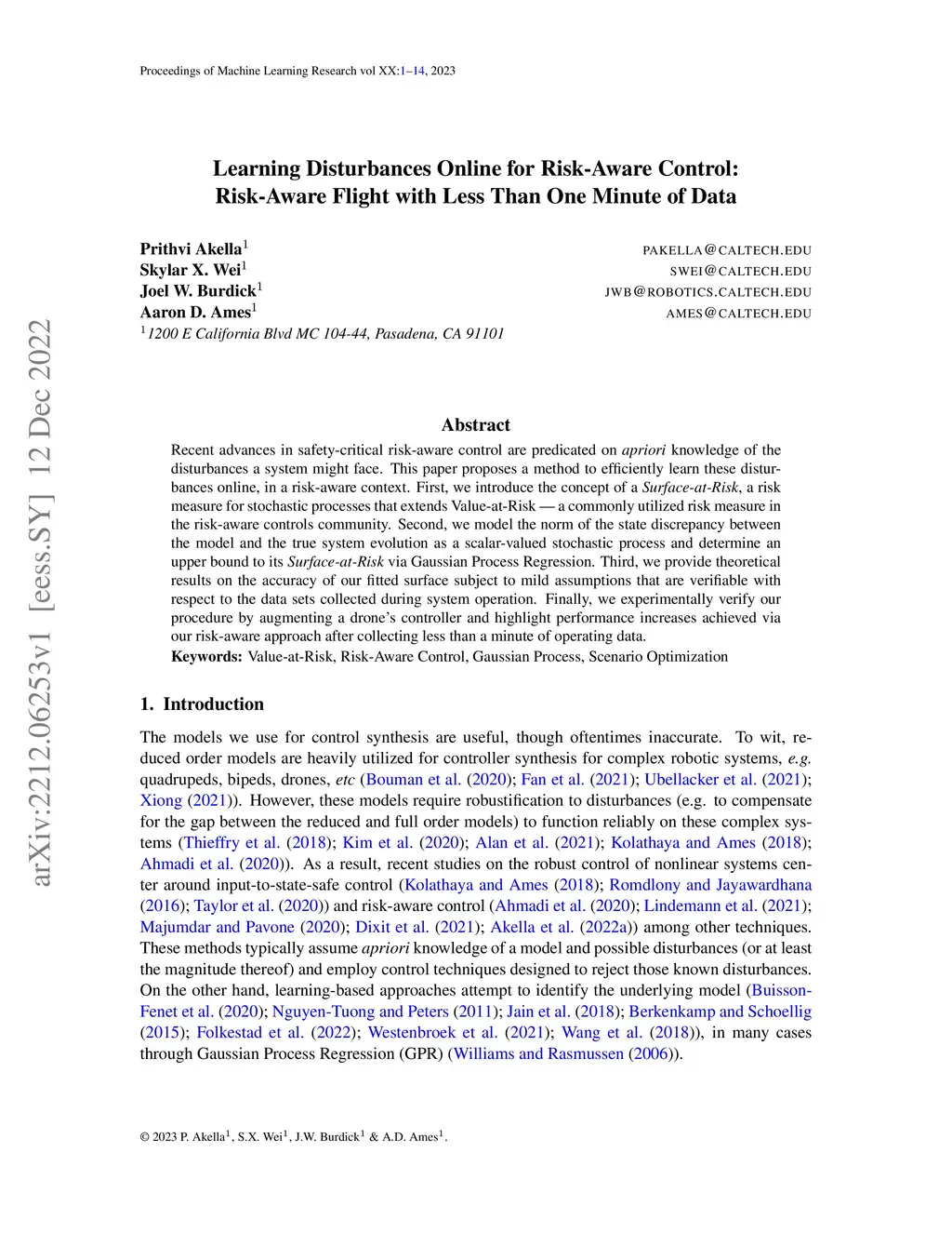 Learning Disturbances Online for Risk-Aware Control: Risk-Aware Flight