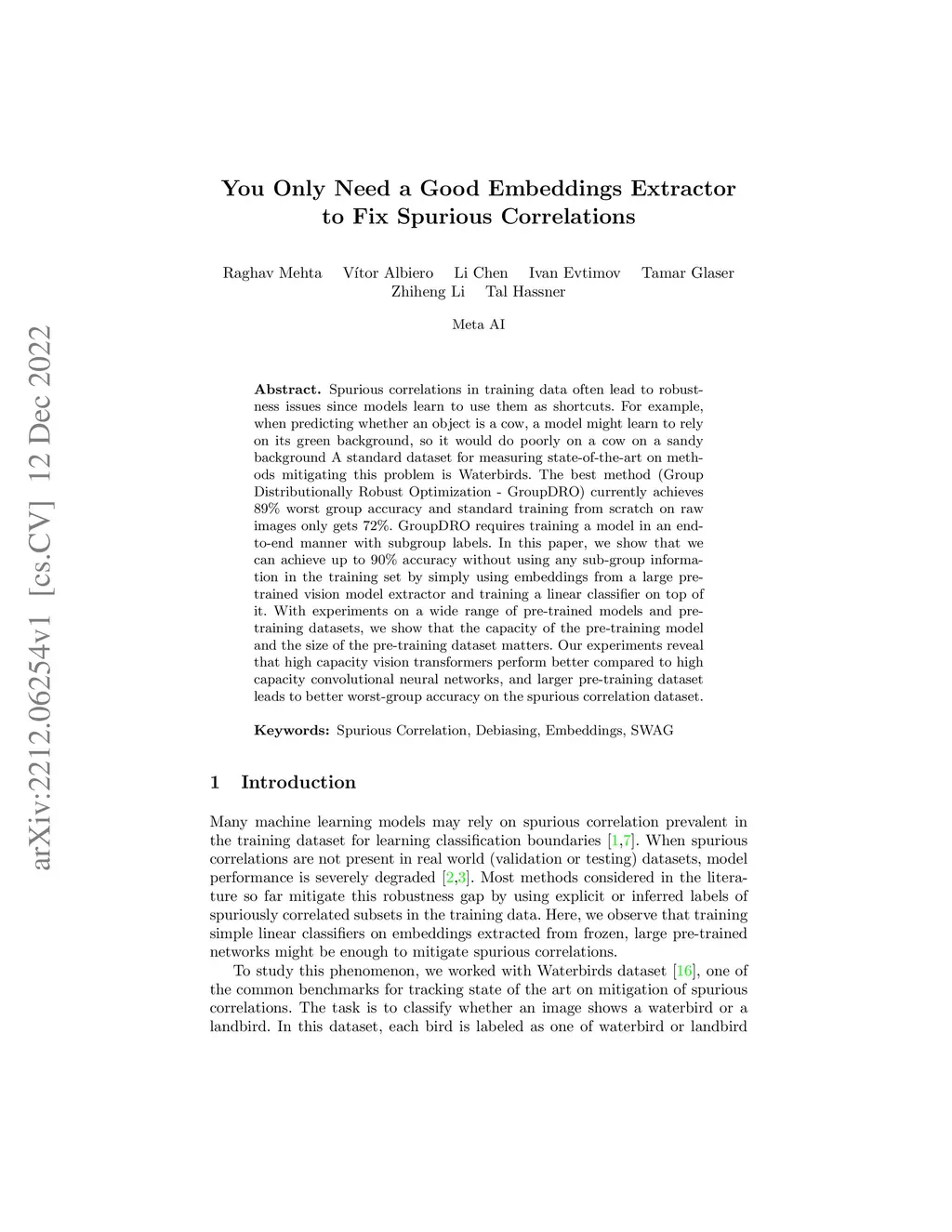 You Only Need a Good Embeddings Extractor to Fix Spurious Correlations