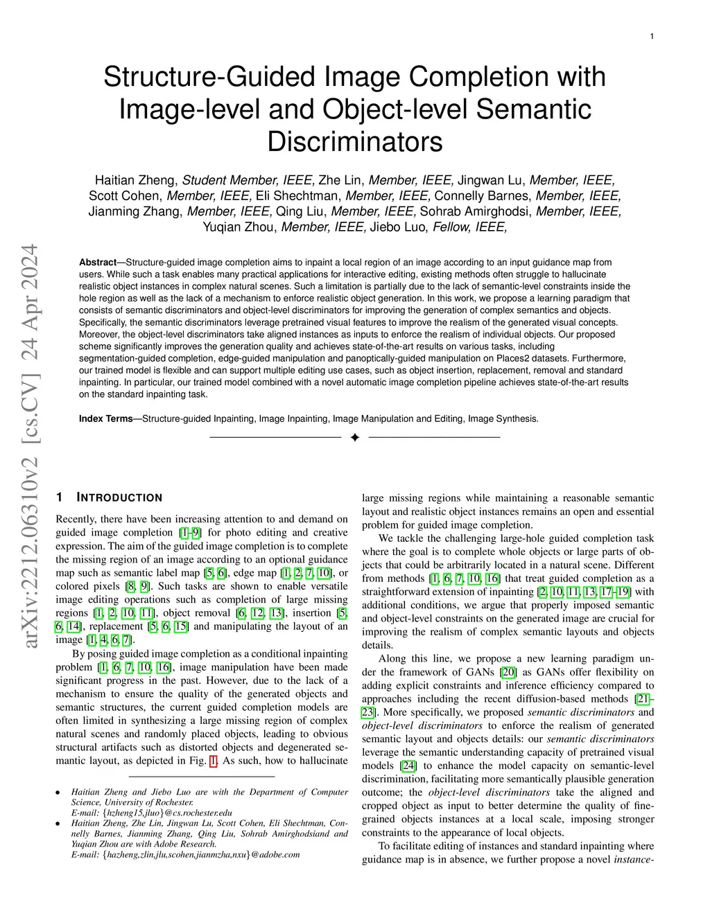 Structure-Guided Image Completion with Image-level and Object-level