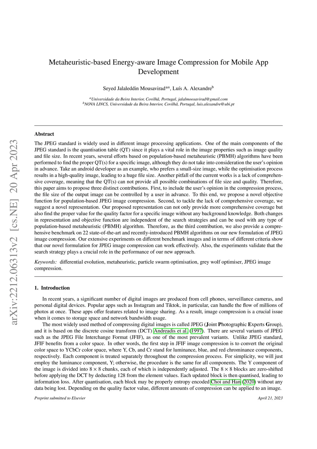 Metaheuristic-based Energy-aware Image Compression for Mobile App