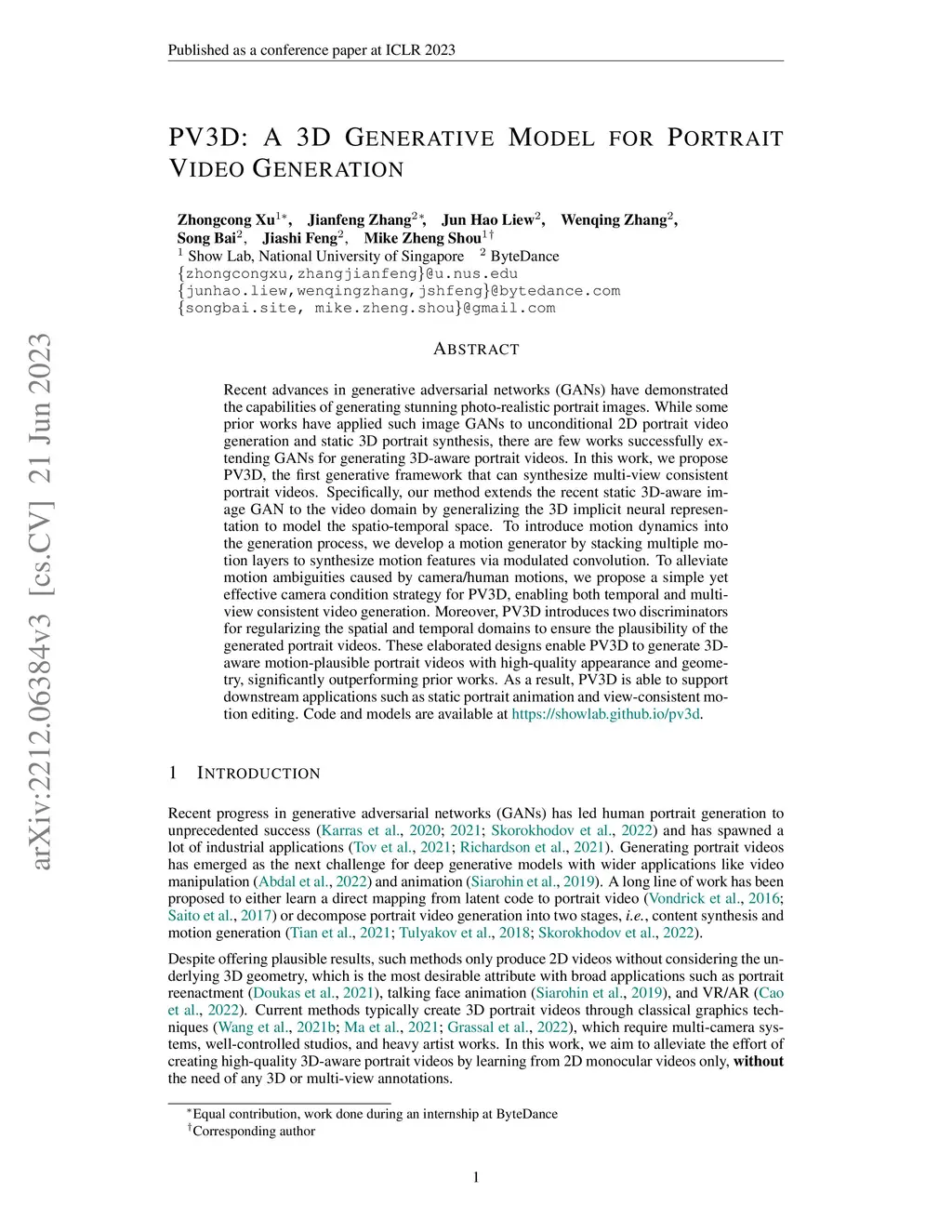 PV3D: A 3D Generative Model for Portrait Video Generation