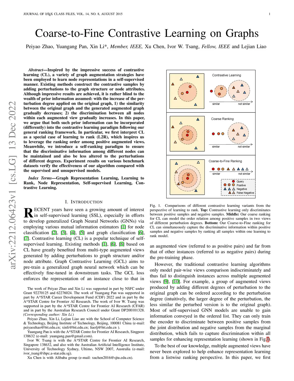 Inspired by the impressive success of contrastive learning (CL), a variety of graph augmentation strategies have been employed to learn node representations in a self-supervised manner. Existing methods construct the contrastive samples by adding perturbations to the graph structure or node attributes. Although impressive results are achieved, it is rather blind to the wealth of prior information assumed: with the increase of the perturbation degree applied on the original graph, 1) the similarity between the original graph and the generated augmented graph gradually decreases; 2) the discrimination between all nodes within each augmented view gradually increases. In this paper, we argue that both such prior information can be incorporated (differently) into the contrastive learning paradigm following our general ranking framework. In particular, we first interpret CL as a special case of learning to rank (L2R), which inspires us to leverage the ranking order among positive augmented views. Meanwhile, we introduce a self-ranking paradigm to ensure that the discriminative information among different nodes can be maintained and also be less altered to the perturbations of different degrees. Experiment results on various benchmark datasets verify the effectiveness of our algorithm compared with the supervised and unsupervised models.