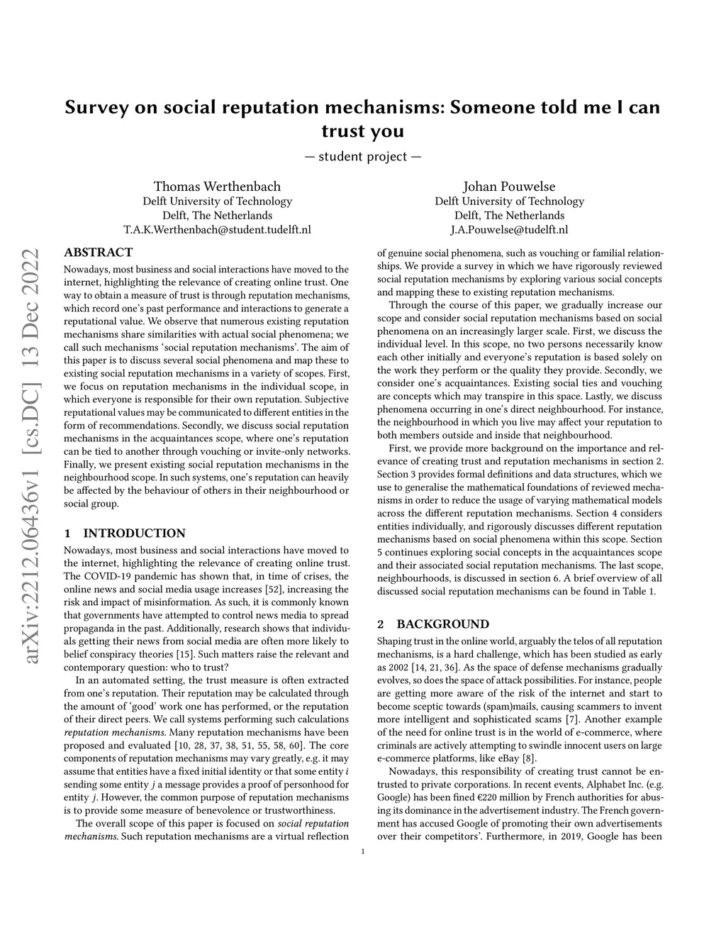 Survey on social reputation mechanisms: Someone told me I can trust you