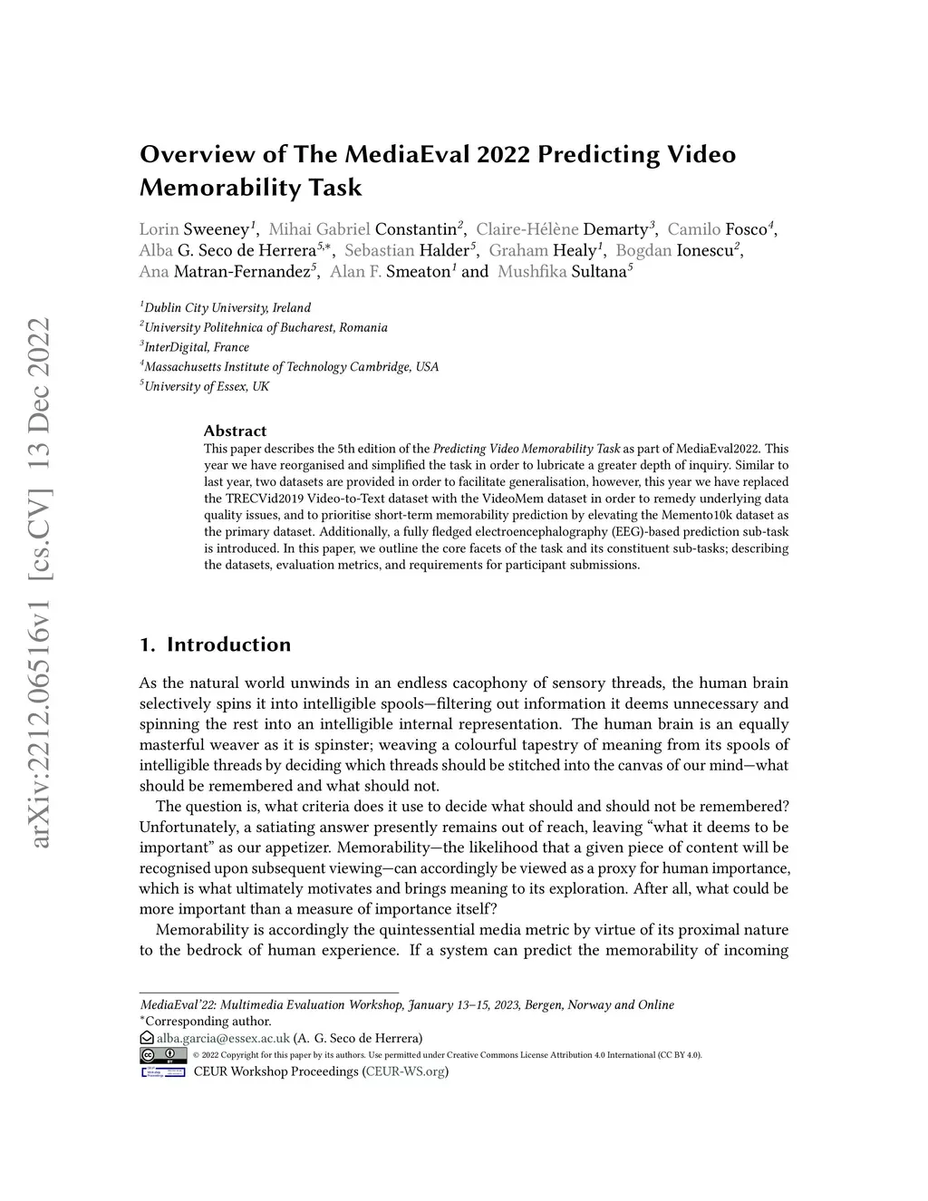 Overview of The MediaEval 2022 Predicting Video Memorability Task