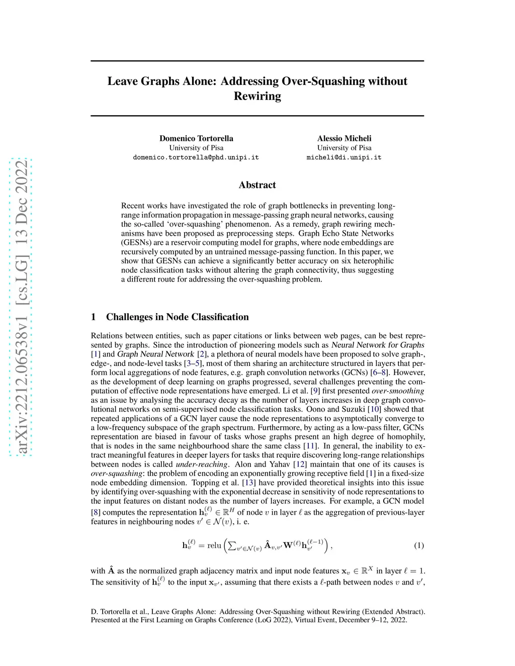 Recent works have investigated the role of graph bottlenecks in preventing long-range information propagation in message-passing graph neural networks, causing the so-called `over-squashing' phenomenon. As a remedy, graph rewiring mechanisms have been proposed as preprocessing steps. Graph Echo State Networks (GESNs) are a reservoir computing model for graphs, where node embeddings are recursively computed by an untrained message-passing function. In this paper, we show that GESNs can achieve a significantly better accuracy on six heterophilic node classification tasks without altering the graph connectivity, thus suggesting a different route for addressing the over-squashing problem.