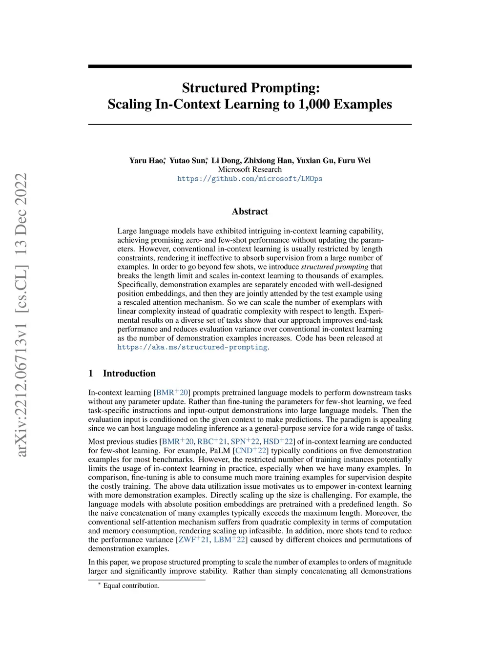 Structured Prompting: Scaling In-Context Learning to 1,000 Examples