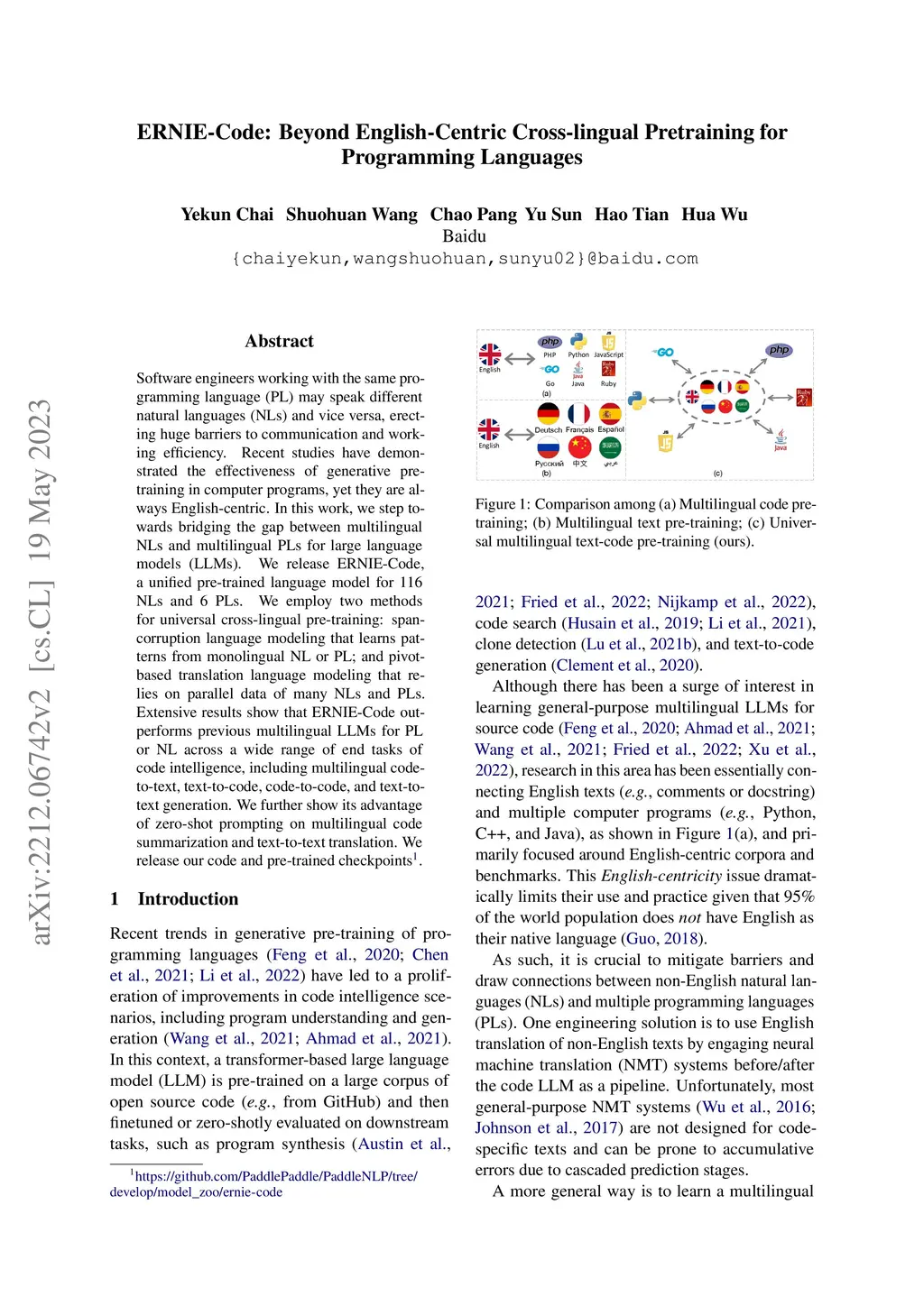 ERNIE-Code: Beyond English-Centric Cross-lingual Pretraining for