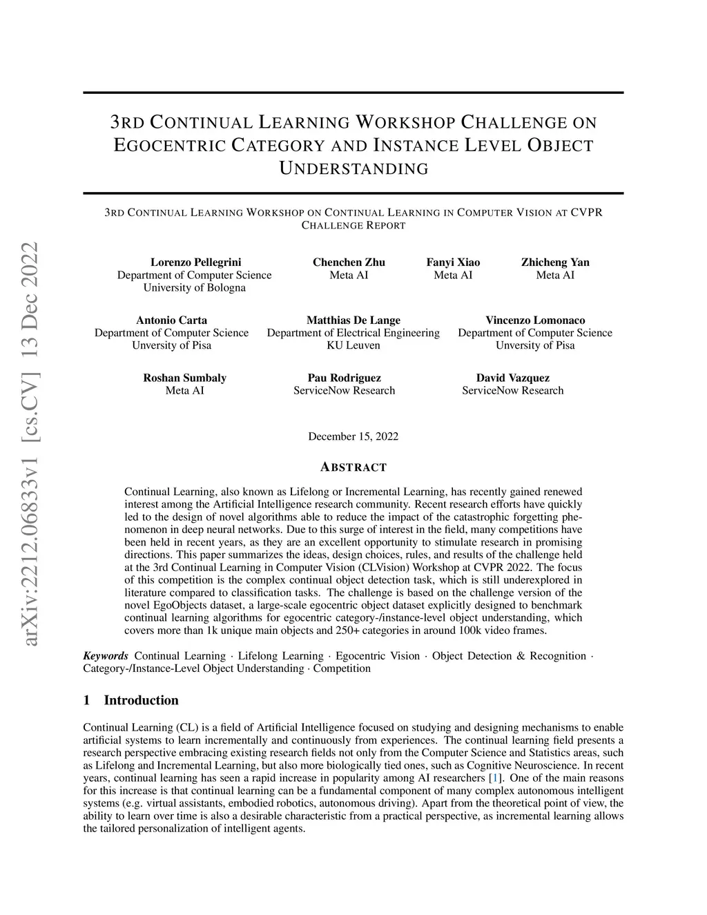 3rd Continual Learning Workshop Challenge on Egocentric Category and
