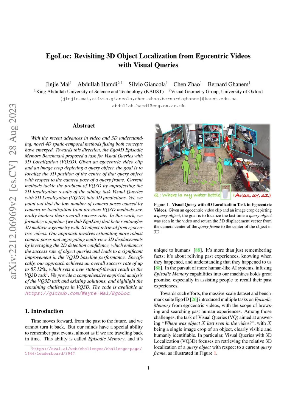 With the recent advances in video and 3D understanding, novel 4D spatio-temporal methods fusing both concepts have emerged. Towards this direction, the Ego4D Episodic Memory Benchmark proposed a task for Visual Queries with 3D Localization (VQ3D). Given an egocentric video clip and an image crop depicting a query object, the goal is to localize the 3D position of the center of that query object with respect to the camera pose of a query frame. Current methods tackle the problem of VQ3D by unprojecting the 2D localization results of the sibling task Visual Queries with 2D Localization (VQ2D) into 3D predictions. Yet, we point out that the low number of camera poses caused by camera re-localization from previous VQ3D methods severally hinders their overall success rate. In this work, we formalize a pipeline (we dub EgoLoc) that better entangles 3D multiview geometry with 2D object retrieval from egocentric videos. Our approach involves estimating more robust camera poses and aggregating multi-view 3D displacements by leveraging the 2D detection confidence, which enhances the success rate of object queries and leads to a significant improvement in the VQ3D baseline performance. Specifically, our approach achieves an overall success rate of up to 87.12%, which sets a new state-of-the-art result in the VQ3D task. We provide a comprehensive empirical analysis of the VQ3D task and existing solutions, and highlight the remaining challenges in VQ3D. The code is available at https://github.com/Wayne-Mai/EgoLoc.