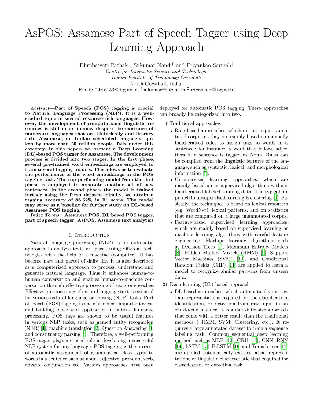 AsPOS: Assamese Part of Speech Tagger using Deep Learning Approach