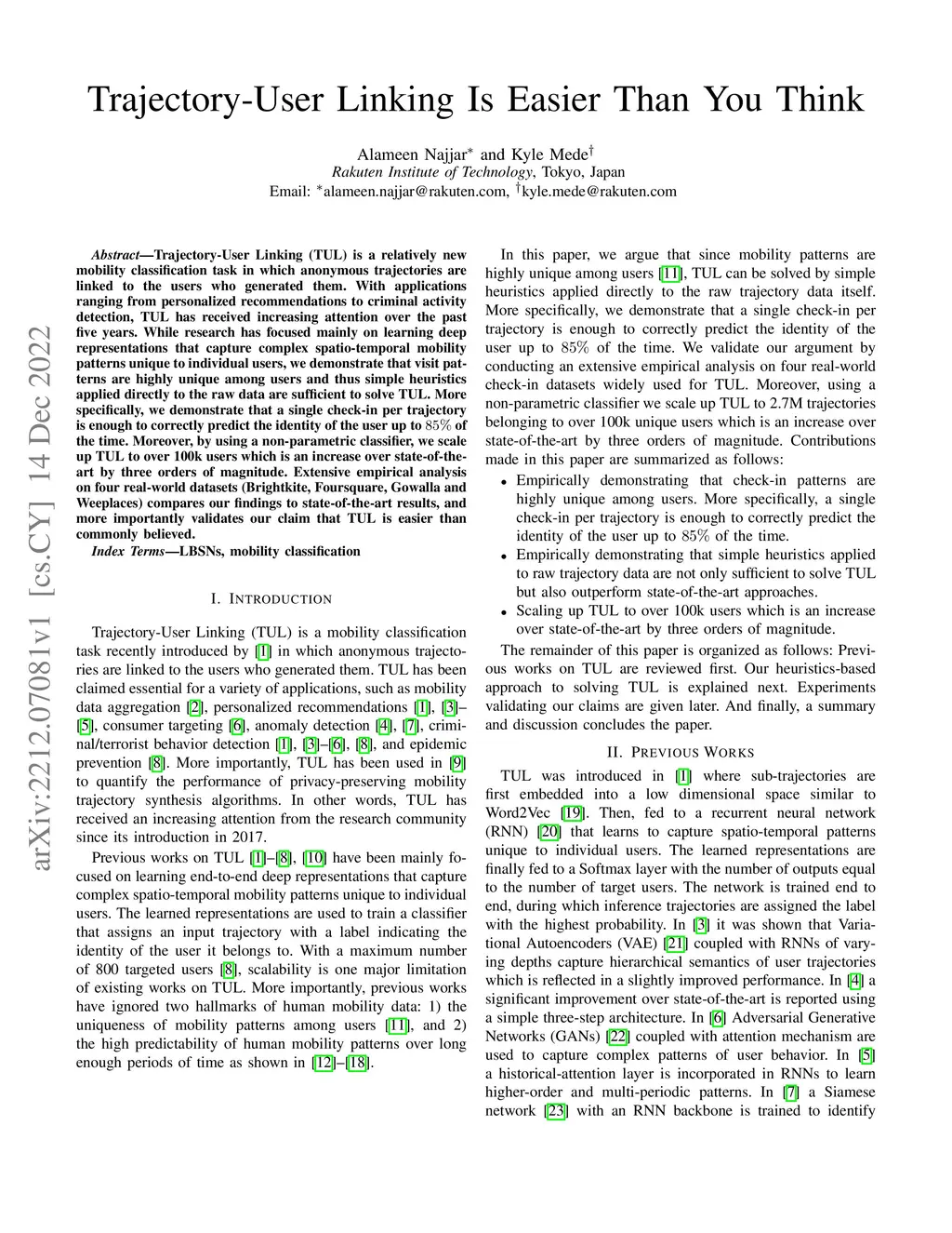 Trajectory-User Linking (TUL) is a relatively new mobility classification task in which anonymous trajectories are linked to the users who generated them. With applications ranging from personalized recommendations to criminal activity detection, TUL has received increasing attention over the past five years. While research has focused mainly on learning deep representations that capture complex spatio-temporal mobility patterns unique to individual users, we demonstrate that visit patterns are highly unique among users and thus simple heuristics applied directly to the raw data are sufficient to solve TUL. More specifically, we demonstrate that a single check-in per trajectory is enough to correctly predict the identity of the user up to 85% of the time. Moreover, by using a non-parametric classifier, we scale up TUL to over 100k users which is an increase over state-of-the-art by three orders of magnitude. Extensive empirical analysis on four real-world datasets (Brightkite, Foursquare, Gowalla and Weeplaces) compares our findings to state-of-the-art results, and more importantly validates our claim that TUL is easier than commonly believed.