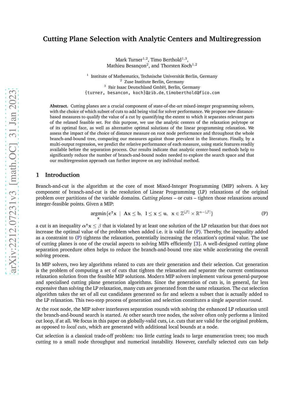 Cutting Plane Selection with Analytic Centers and Multiregression
