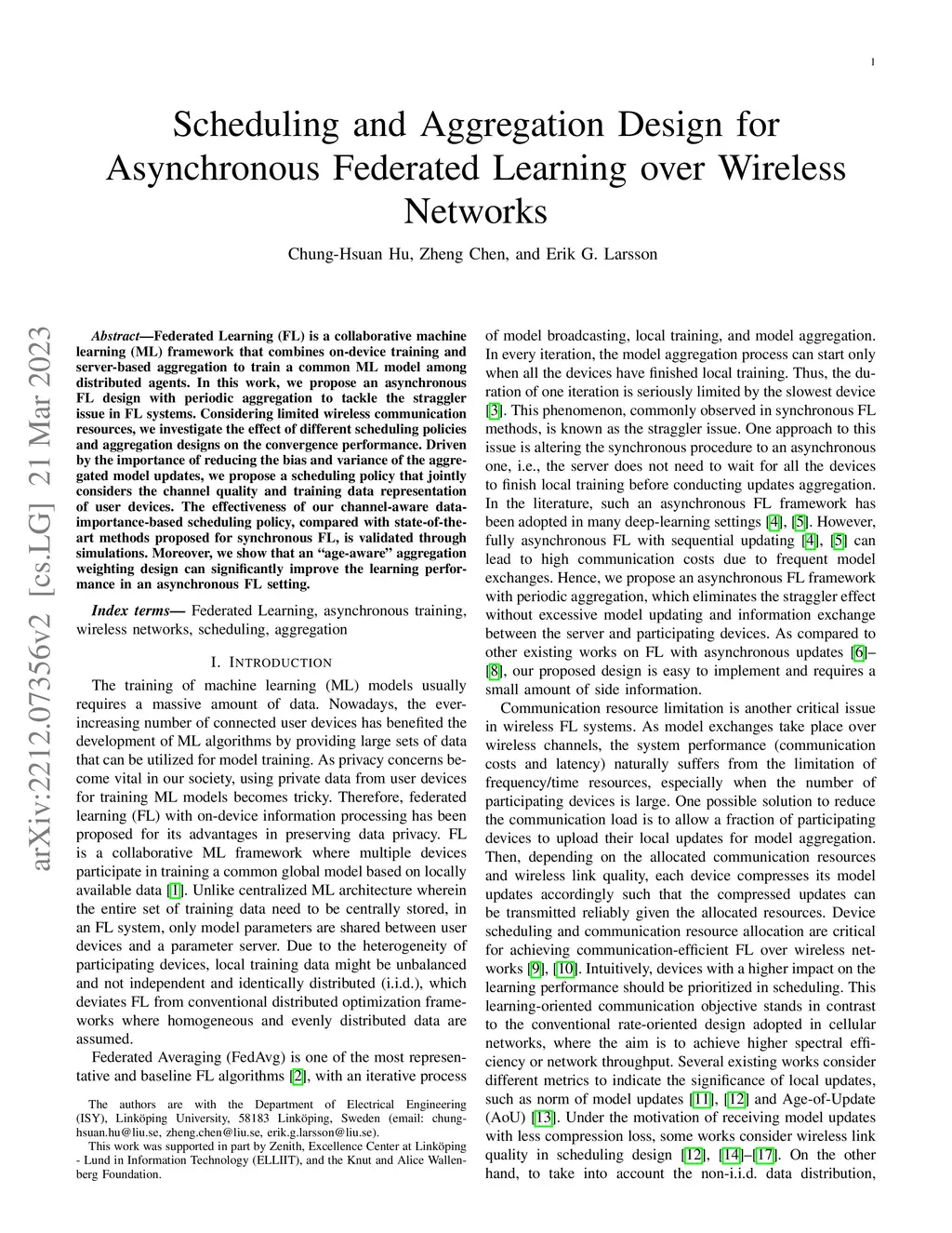Federated Learning (FL) is a collaborative machine learning (ML) framework that combines on-device training and server-based aggregation to train a common ML model among distributed agents. In this work, we propose an asynchronous FL design with periodic aggregation to tackle the straggler issue in FL systems. Considering limited wireless communication resources, we investigate the effect of different scheduling policies and aggregation designs on the convergence performance. Driven by the importance of reducing the bias and variance of the aggregated model updates, we propose a scheduling policy that jointly considers the channel quality and training data representation of user devices. The effectiveness of our channel-aware data-importance-based scheduling policy, compared with state-of-the-art methods proposed for synchronous FL, is validated through simulations. Moreover, we show that an ``age-aware'' aggregation weighting design can significantly improve the learning performance in an asynchronous FL setting.