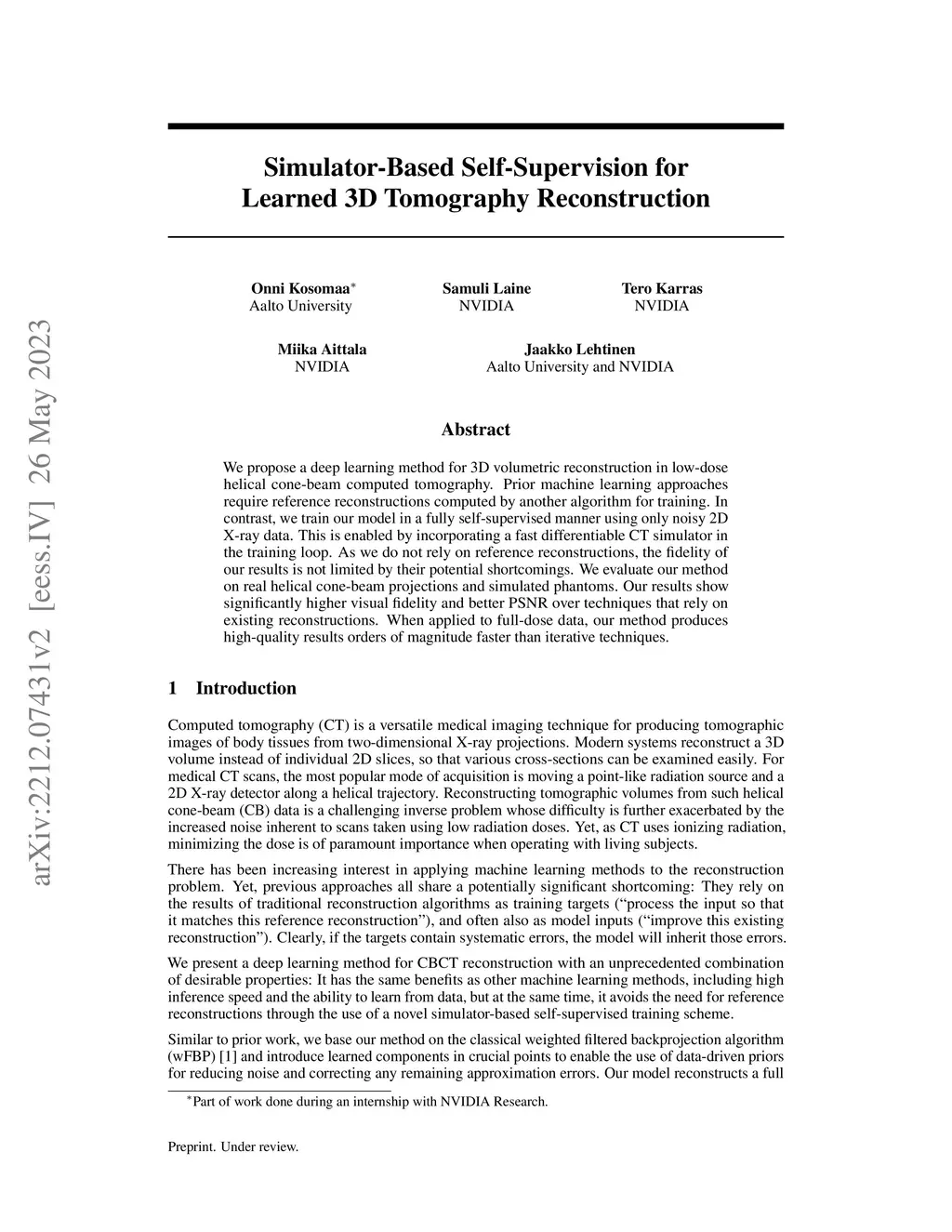 Simulator-Based Self-Supervision for Learned 3D Tomography