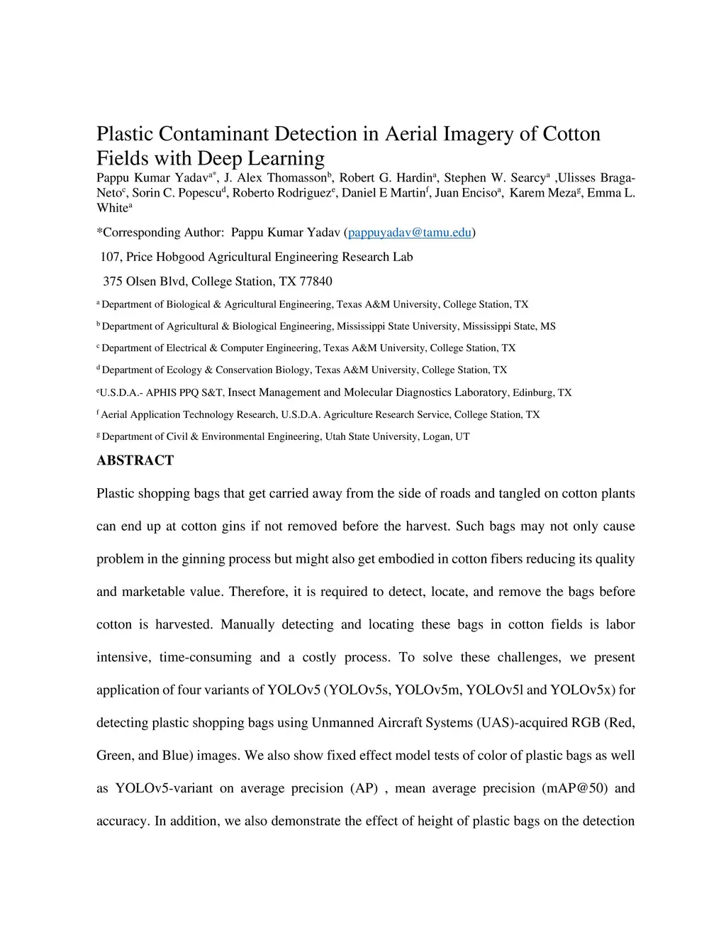 Plastic Contaminant Detection in Aerial Imagery of Cotton Fields with