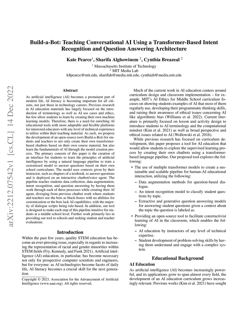 Build-a-Bot: Teaching Conversational AI Using a Transformer-Based Intent