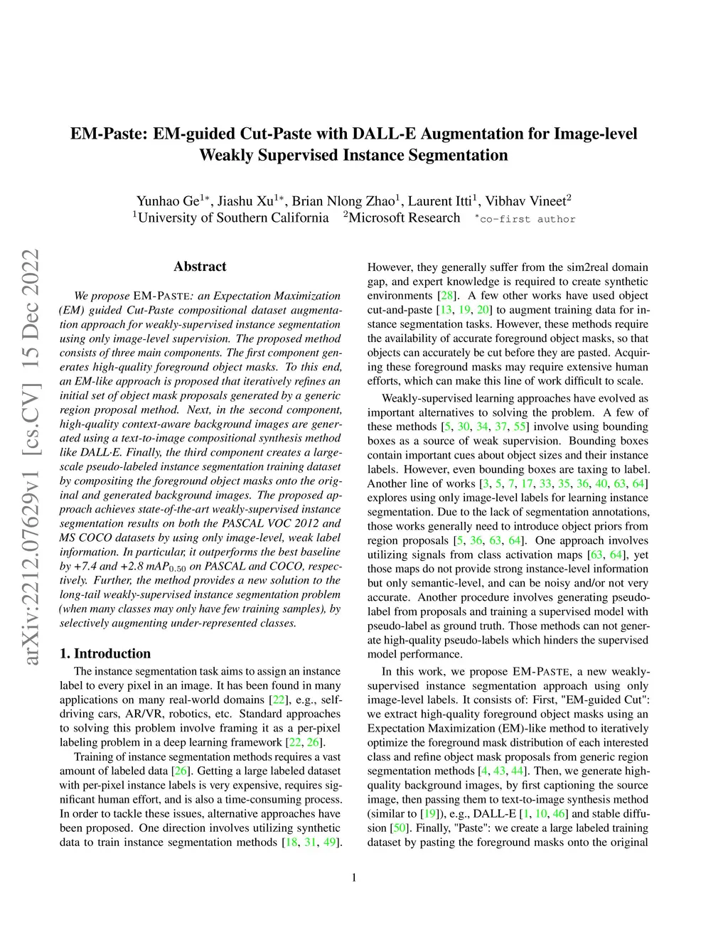EM-Paste: EM-guided Cut-Paste with DALL-E Augmentation for Image-level