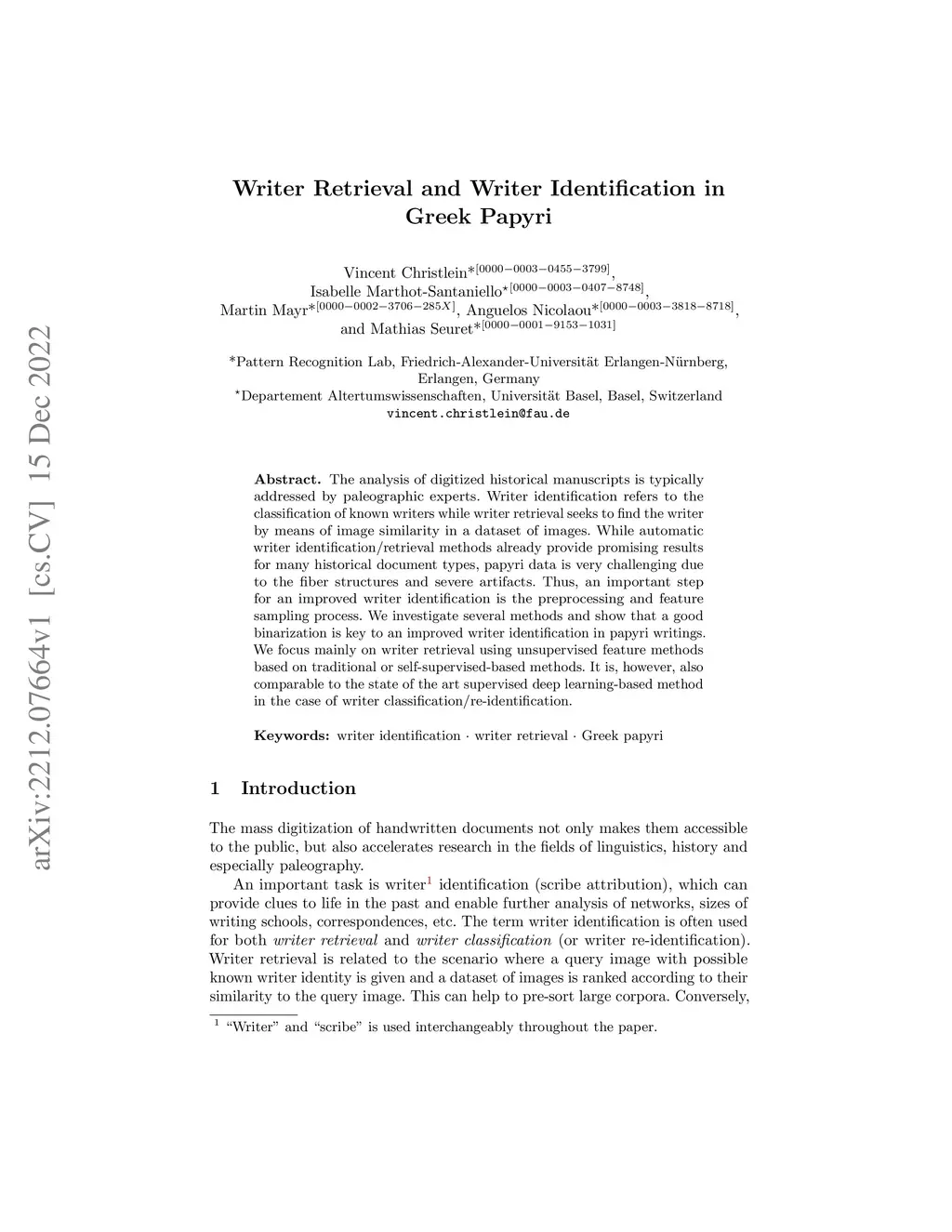 Writer Retrieval and Writer Identification in Greek Papyri
