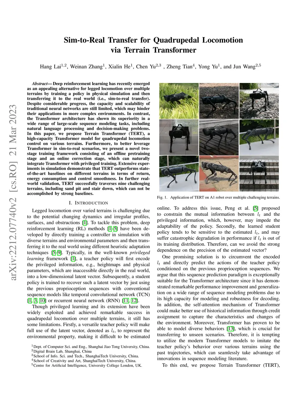 Sim-to-Real Transfer for Quadrupedal Locomotion via Terrain Transformer