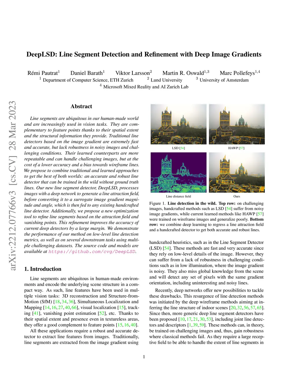 Line segments are ubiquitous in our human-made world and are increasingly used in vision tasks. They are complementary to feature points thanks to their spatial extent and the structural information they provide. Traditional line detectors based on the image gradient are extremely fast and accurate, but lack robustness in noisy images and challenging conditions. Their learned counterparts are more repeatable and can handle challenging images, but at the cost of a lower accuracy and a bias towards wireframe lines. We propose to combine traditional and learned approaches to get the best of both worlds: an accurate and robust line detector that can be trained in the wild without ground truth lines. Our new line segment detector, DeepLSD, processes images with a deep network to generate a line attraction field, before converting it to a surrogate image gradient magnitude and angle, which is then fed to any existing handcrafted line detector. Additionally, we propose a new optimization tool to refine line segments based on the attraction field and vanishing points. This refinement improves the accuracy of current deep detectors by a large margin. We demonstrate the performance of our method on low-level line detection metrics, as well as on several downstream tasks using multiple challenging datasets. The source code and models are available at https://github.com/cvg/DeepLSD.