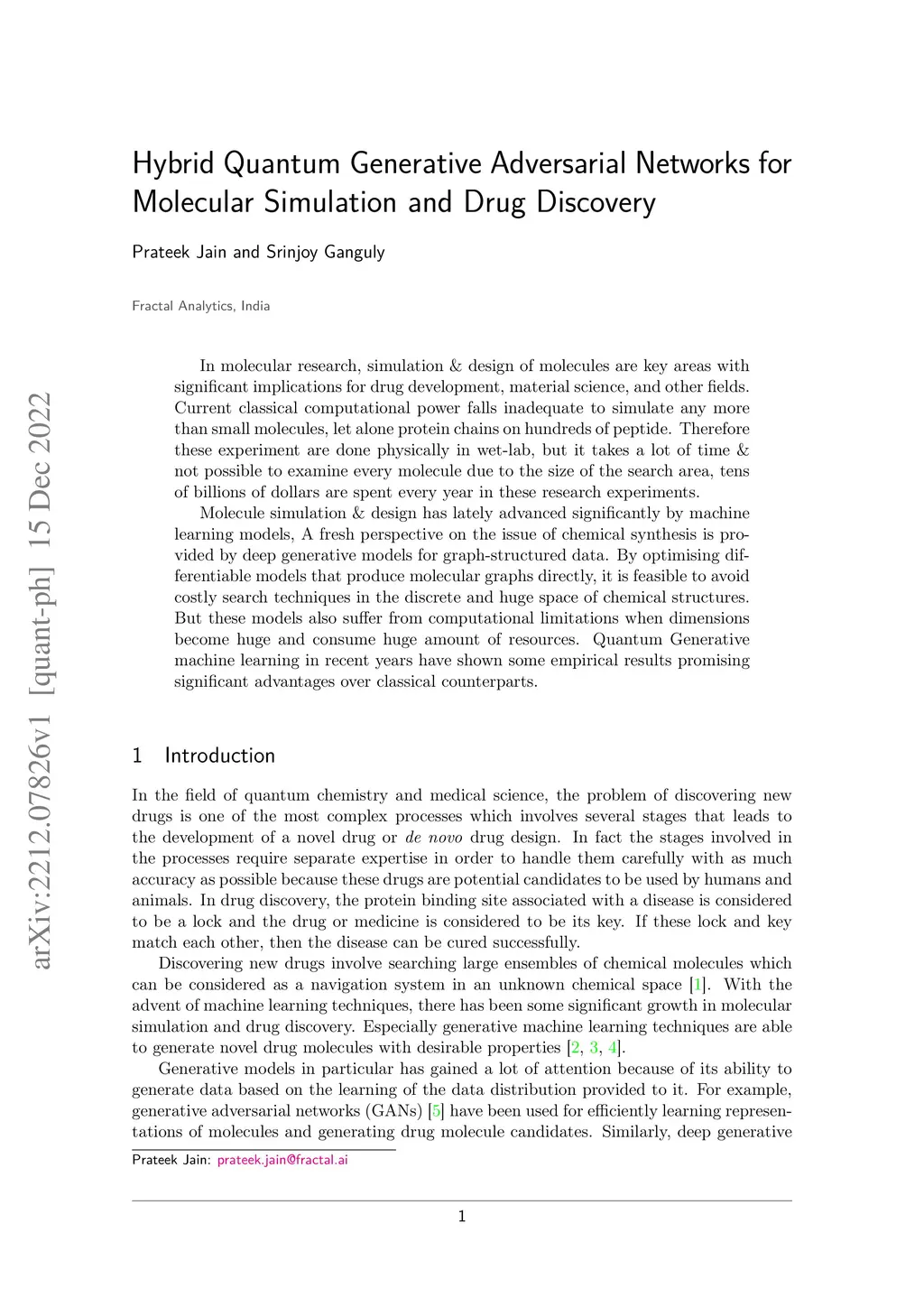 In molecular research, simulation \& design of molecules are key areas with significant implications for drug development, material science, and other fields. Current classical computational power falls inadequate to simulate any more than small molecules, let alone protein chains on hundreds of peptide. Therefore these experiment are done physically in wet-lab, but it takes a lot of time \& not possible to examine every molecule due to the size of the search area, tens of billions of dollars are spent every year in these research experiments. Molecule simulation \& design has lately advanced significantly by machine learning models, A fresh perspective on the issue of chemical synthesis is provided by deep generative models for graph-structured data. By optimising differentiable models that produce molecular graphs directly, it is feasible to avoid costly search techniques in the discrete and huge space of chemical structures. But these models also suffer from computational limitations when dimensions become huge and consume huge amount of resources. Quantum Generative machine learning in recent years have shown some empirical results promising significant advantages over classical counterparts.