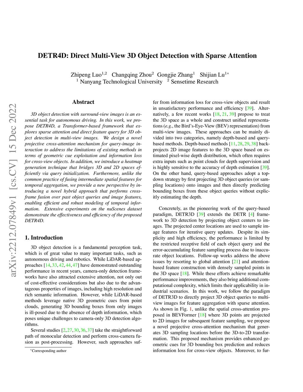 DETR4D: Direct Multi-View 3D Object Detection with Sparse Attention