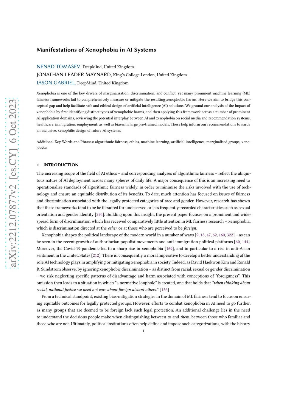 Manifestations of Xenophobia in AI Systems