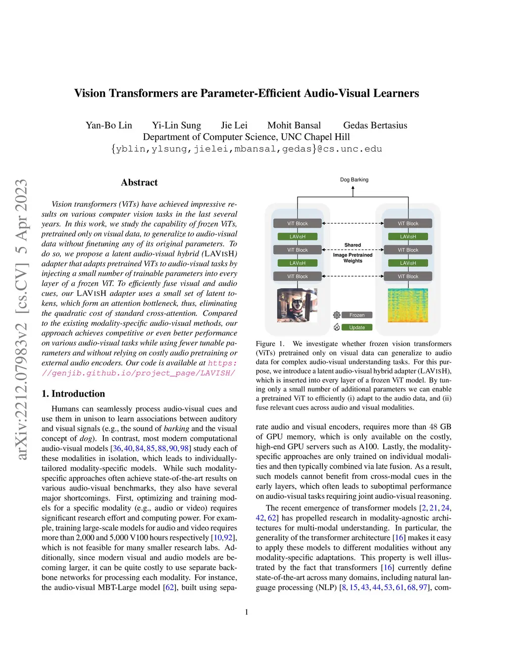 Vision Transformers are Parameter-Efficient Audio-Visual Learners