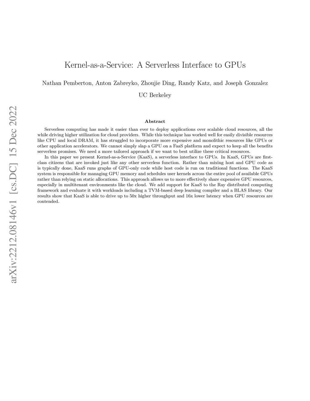 Kernel-as-a-Service: A Serverless Interface to GPUs