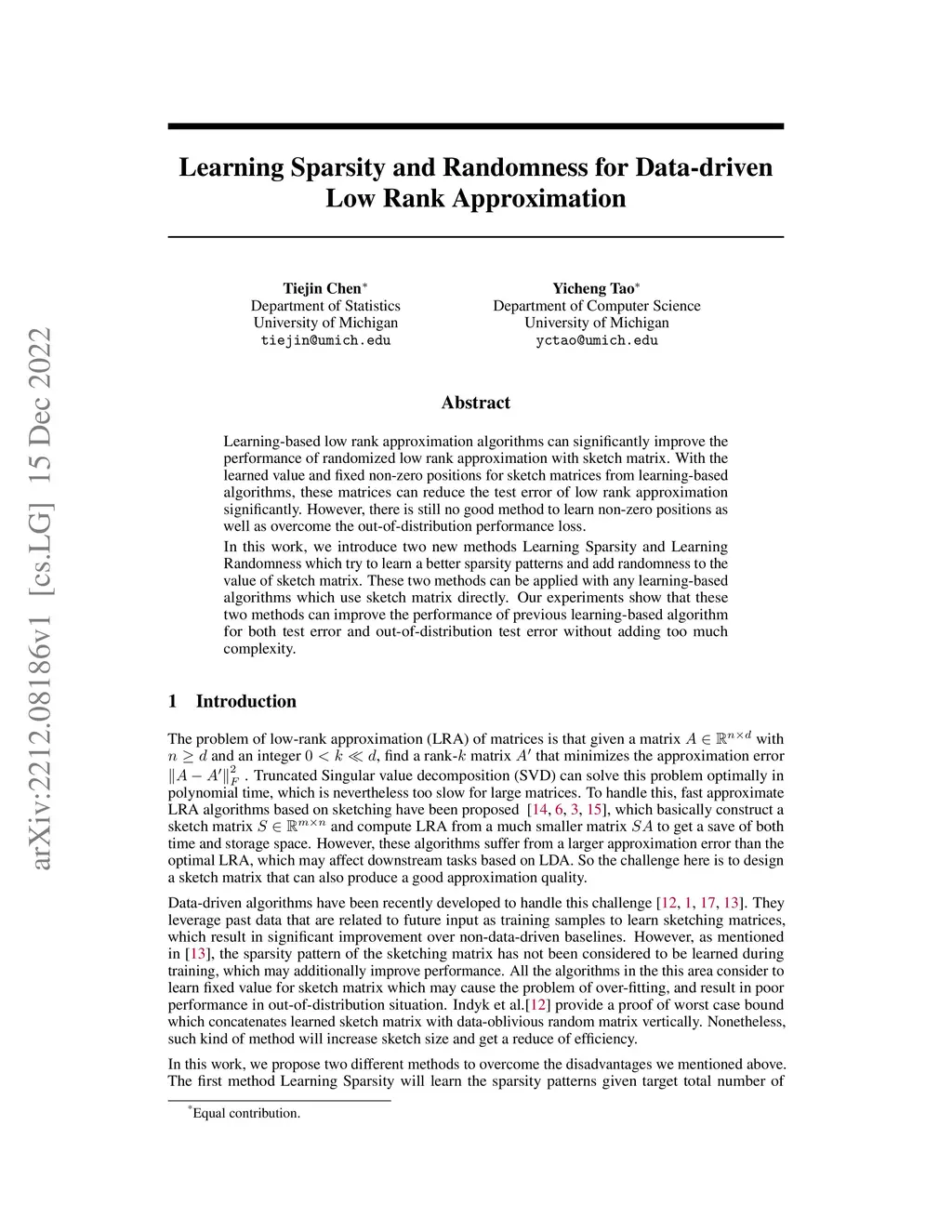 Learning Sparsity and Randomness for Data-driven Low Rank Approximation