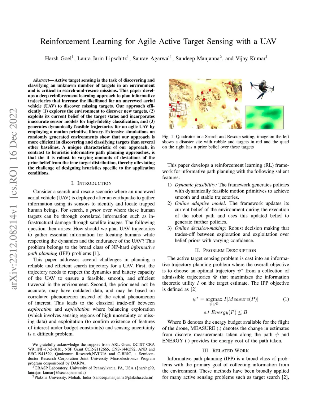Reinforcement Learning for Agile Active Target Sensing with a UAV