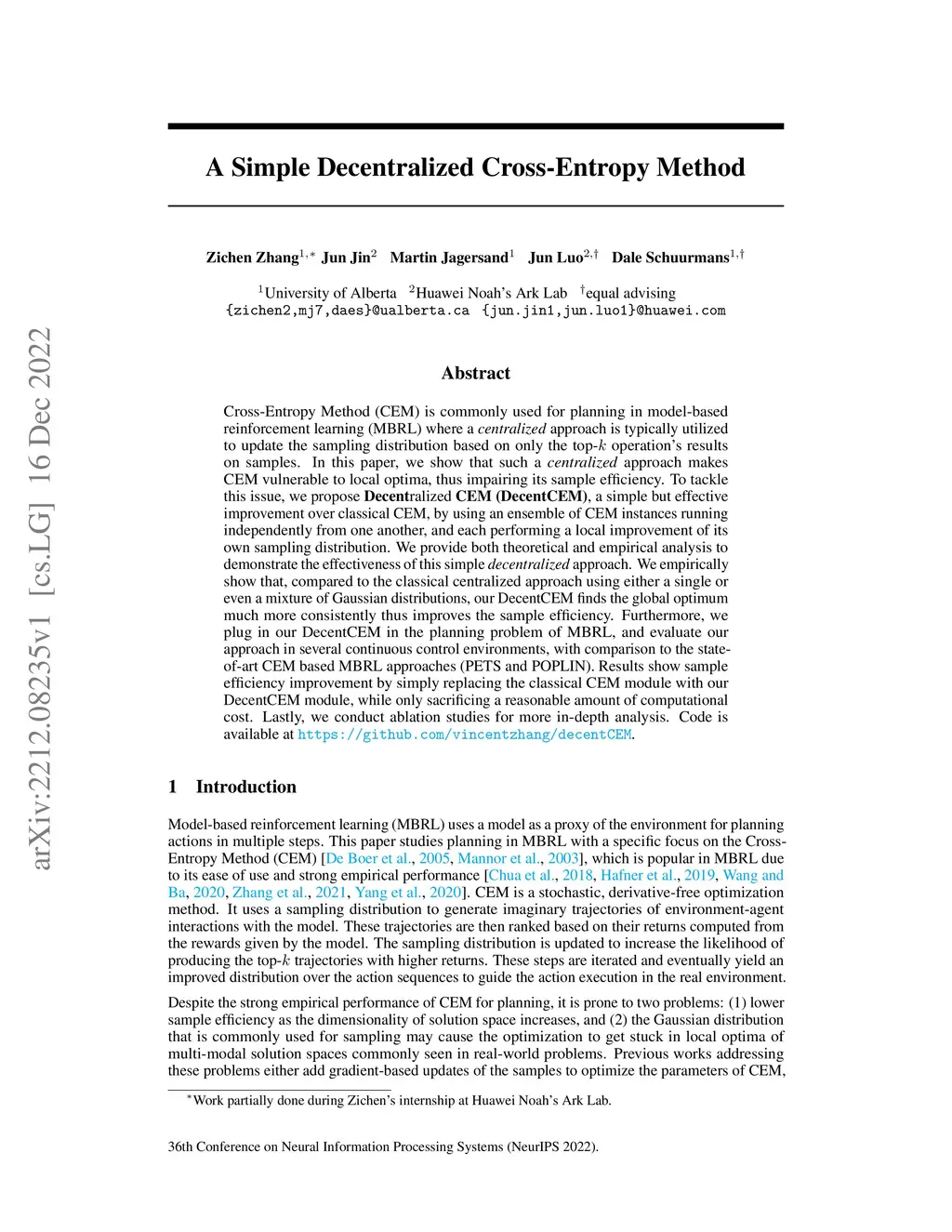 A Simple Decentralized Cross-Entropy Method