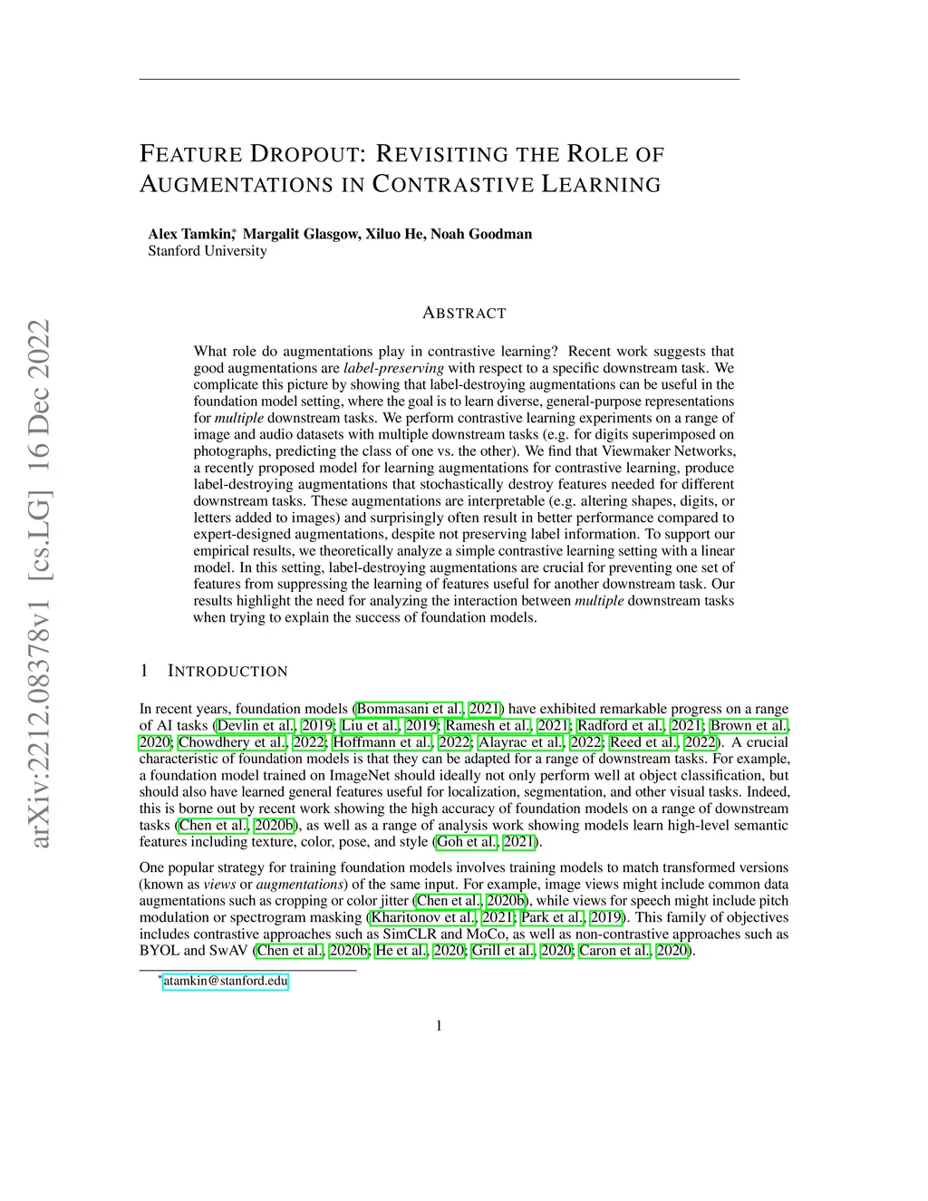 Feature Dropout: Revisiting the Role of Augmentations in Contrastive