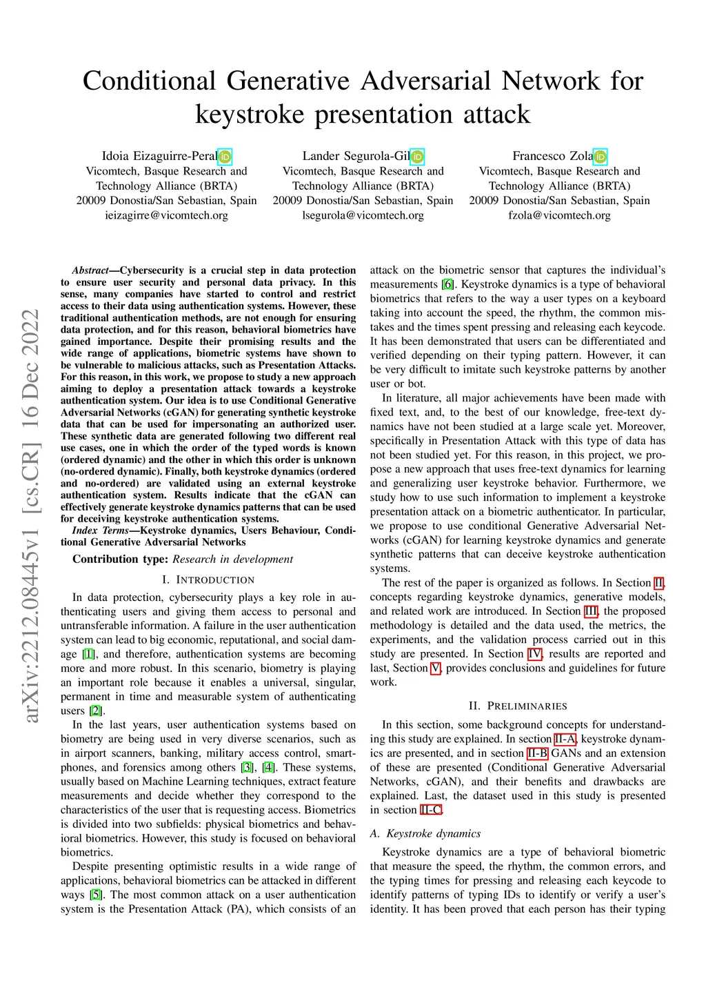 Conditional Generative Adversarial Network for keystroke presentation