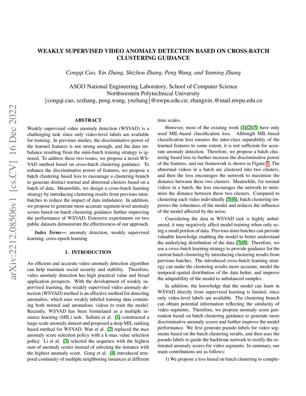 Weakly Supervised Video Anomaly Detection Based on Cross-Batch