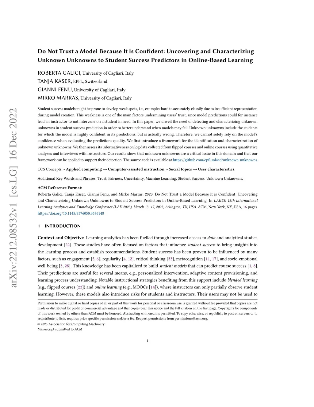 Characterizing Unknown Unknowns to Student Success Predictors in Online-Based