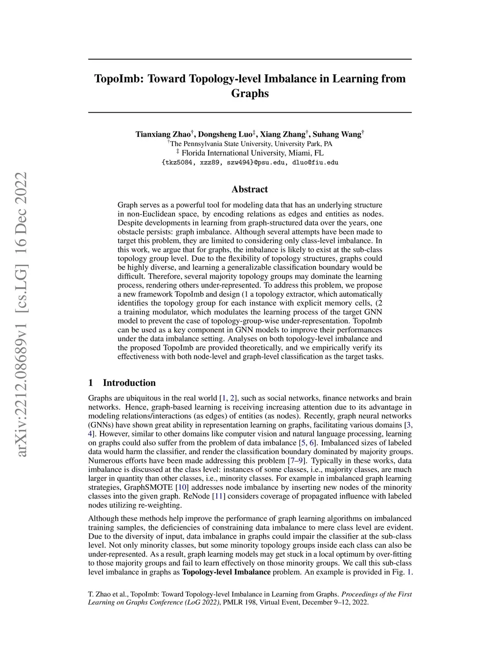 Graph serves as a powerful tool for modeling data that has an underlying structure in non-Euclidean space, by encoding relations as edges and entities as nodes. Despite developments in learning from graph-structured data over the years, one obstacle persists: graph imbalance. Although several attempts have been made to target this problem, they are limited to considering only class-level imbalance. In this work, we argue that for graphs, the imbalance is likely to exist at the sub-class topology group level. Due to the flexibility of topology structures, graphs could be highly diverse, and learning a generalizable classification boundary would be difficult. Therefore, several majority topology groups may dominate the learning process, rendering others under-represented. To address this problem, we propose a new framework {\method} and design (1 a topology extractor, which automatically identifies the topology group for each instance with explicit memory cells, (2 a training modulator, which modulates the learning process of the target GNN model to prevent the case of topology-group-wise under-representation. {\method} can be used as a key component in GNN models to improve their performances under the data imbalance setting. Analyses on both topology-level imbalance and the proposed {\method} are provided theoretically, and we empirically verify its effectiveness with both node-level and graph-level classification as the target tasks.