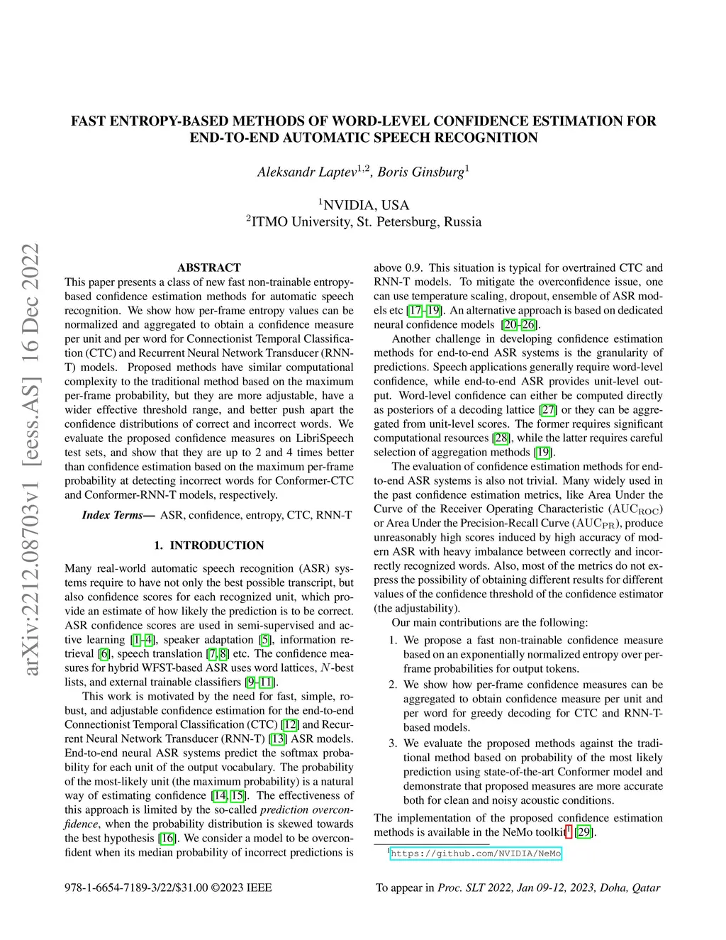 Fast Entropy-Based Methods of Word-Level Confidence Estimation for