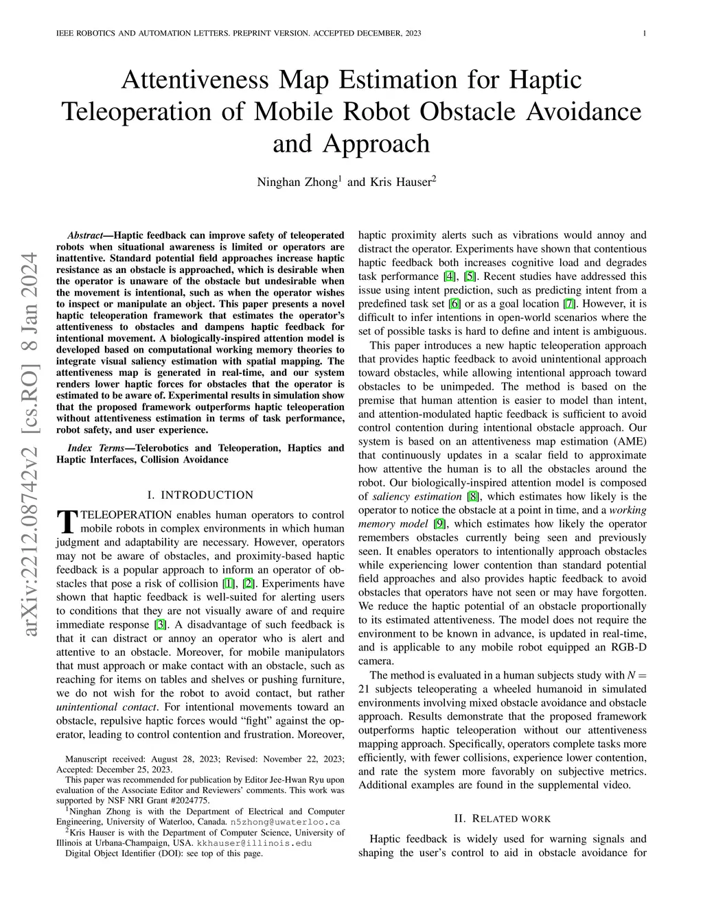 Attentiveness Map Estimation for Haptic Teleoperation of Mobile Robot