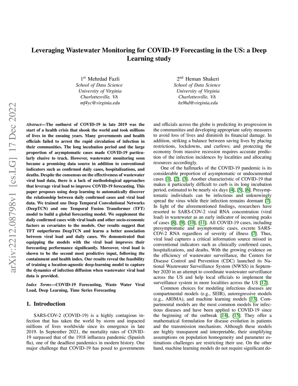 The outburst of COVID-19 in late 2019 was the start of a health crisis that shook the world and took millions of lives in the ensuing years. Many governments and health officials failed to arrest the rapid circulation of infection in their communities. The long incubation period and the large proportion of asymptomatic cases made COVID-19 particularly elusive to track. However, wastewater monitoring soon became a promising data source in addition to conventional indicators such as confirmed daily cases, hospitalizations, and deaths. Despite the consensus on the effectiveness of wastewater viral load data, there is a lack of methodological approaches that leverage viral load to improve COVID-19 forecasting. This paper proposes using deep learning to automatically discover the relationship between daily confirmed cases and viral load data. We trained one Deep Temporal Convolutional Networks (DeepTCN) and one Temporal Fusion Transformer (TFT) model to build a global forecasting model. We supplement the daily confirmed cases with viral loads and other socio-economic factors as covariates to the models. Our results suggest that TFT outperforms DeepTCN and learns a better association between viral load and daily cases. We demonstrated that equipping the models with the viral load improves their forecasting performance significantly. Moreover, viral load is shown to be the second most predictive input, following the containment and health index. Our results reveal the feasibility of training a location-agnostic deep-learning model to capture the dynamics of infection diffusion when wastewater viral load data is provided.