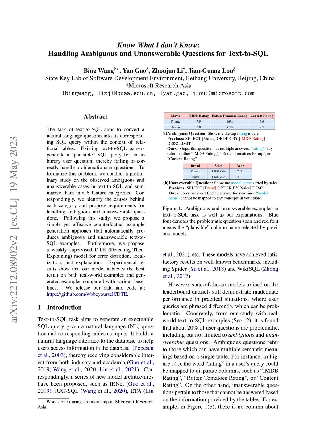 Know What I don't Know: Handling Ambiguous and Unanswerable Questions